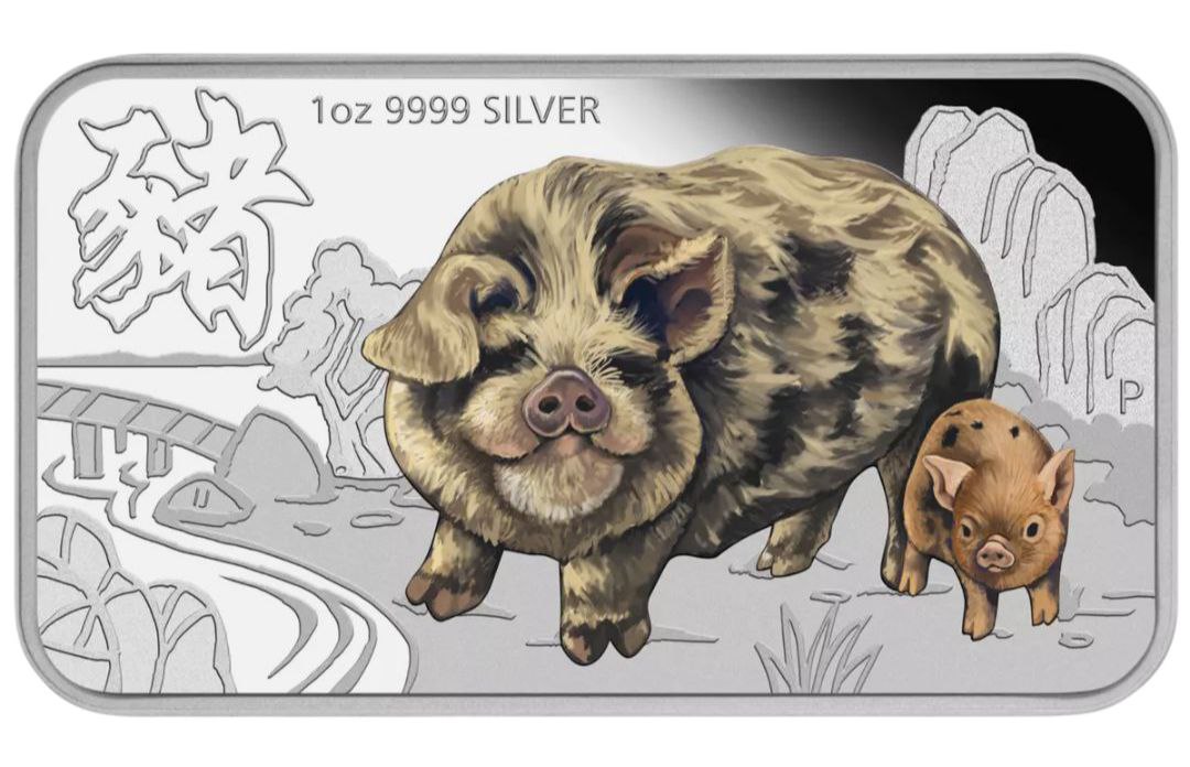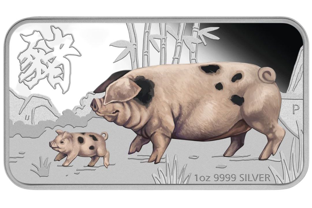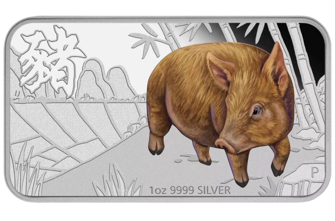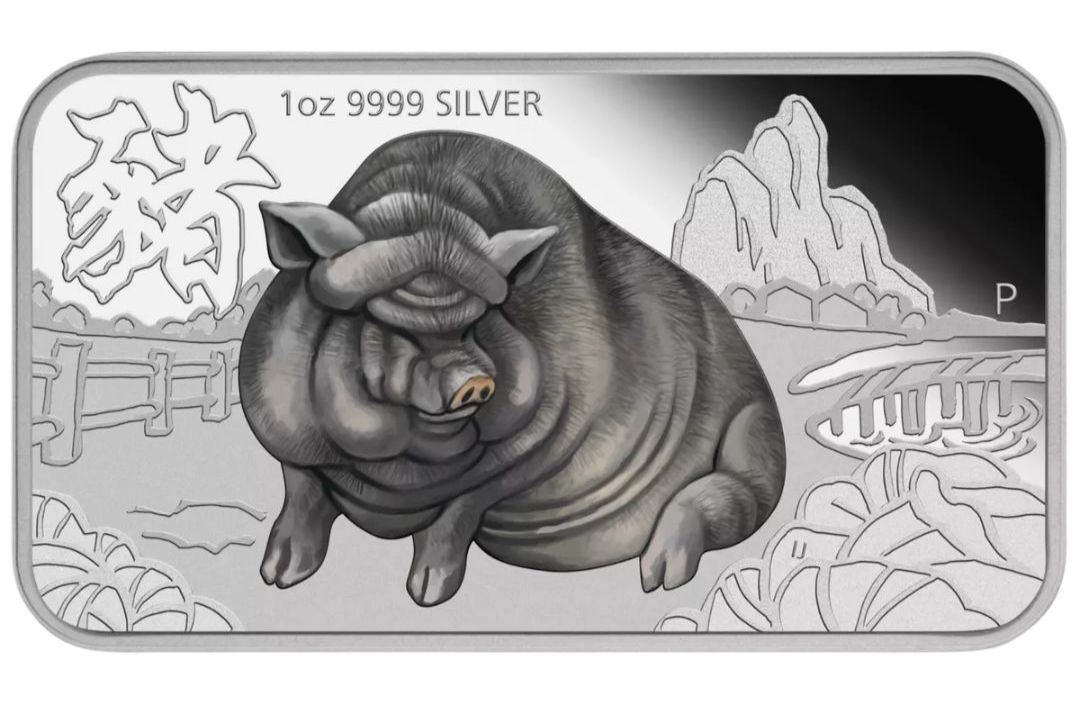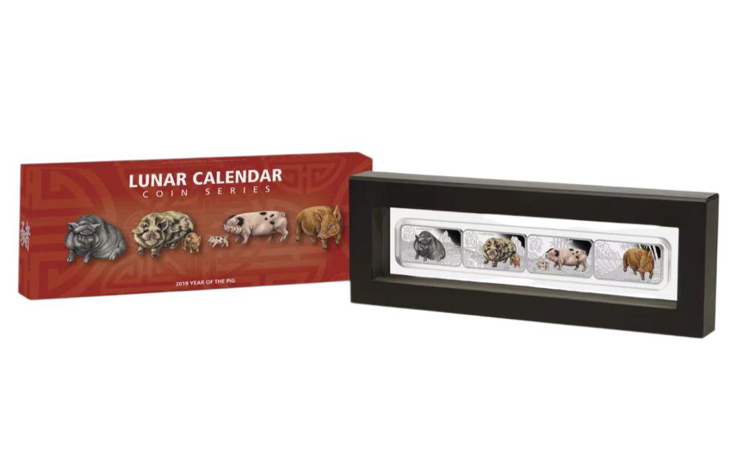 Набір срібних монет «Lunar Calendar Coin Series – Year of the Pig» 2019 року є частиною ексклюзивної серії від Пертського монетного двору, присвяченої Східному місячному календарю. Ця колекція вшановує останній знак китайського зодіаку — Свиню, символ добробуту, щирості, щастя та родинного тепла. Комплект включає чотири монети, кожна з яких зображує різні породи свиней, виконані у кольорі, та створює яскраву композицію, що передає гармонію природи і життєвої радості.