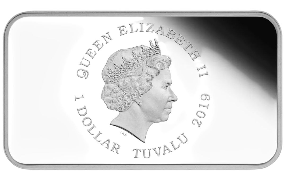 На аверсі монет зображено портрет Її Величності королеви Єлизавети II у профіль. Навколо розміщено написи: «QUEEN ELIZABETH II», «TUVALU», «1 DOLLAR» та рік випуску — «2019». Дзеркальне тло підкреслює високий рельєф і додає витонченості, властивої монетам серії Lunar Calendar.