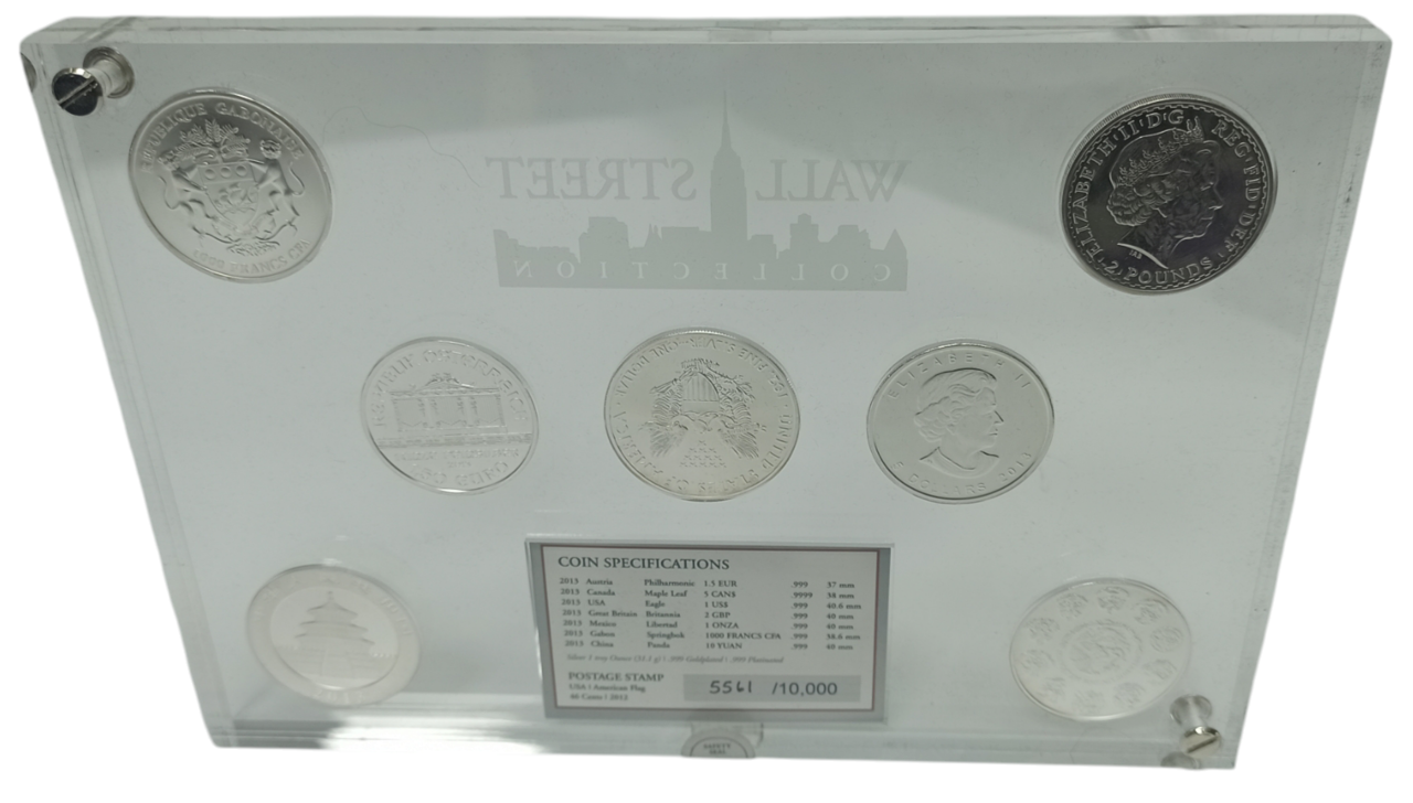 Цей набір містить сім найвідоміших інвестиційних монет 2013 року, кожна з яких відображає культурні та історичні особливості своєї країни. Монети виготовлені зі срібла найвищої проби (.999) та додатково оздоблені золотим і платиновим покриттям. У колекції представлені випуски з Австрії, Канади, США, Великої Британії, Мексики, Габону та Китаю, що робить цей набір цінним придбанням як для колекціонерів, так і для інвесторів. Лімітований тираж у 10 000 примірників підкреслює його унікальність і ексклюзивність.