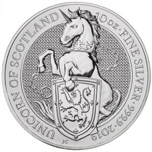 Коллекционная серебряная монета «Звери Королевы – Единорог Шотландии» 311 г 2019 год