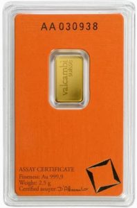 Коллекционный золотой слиток 2.5 грамма VALCAMBI