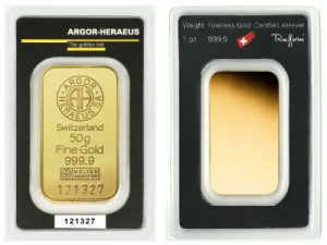 Коллекционный золотой слиток 50 грамм ARGOR-HERAEUS