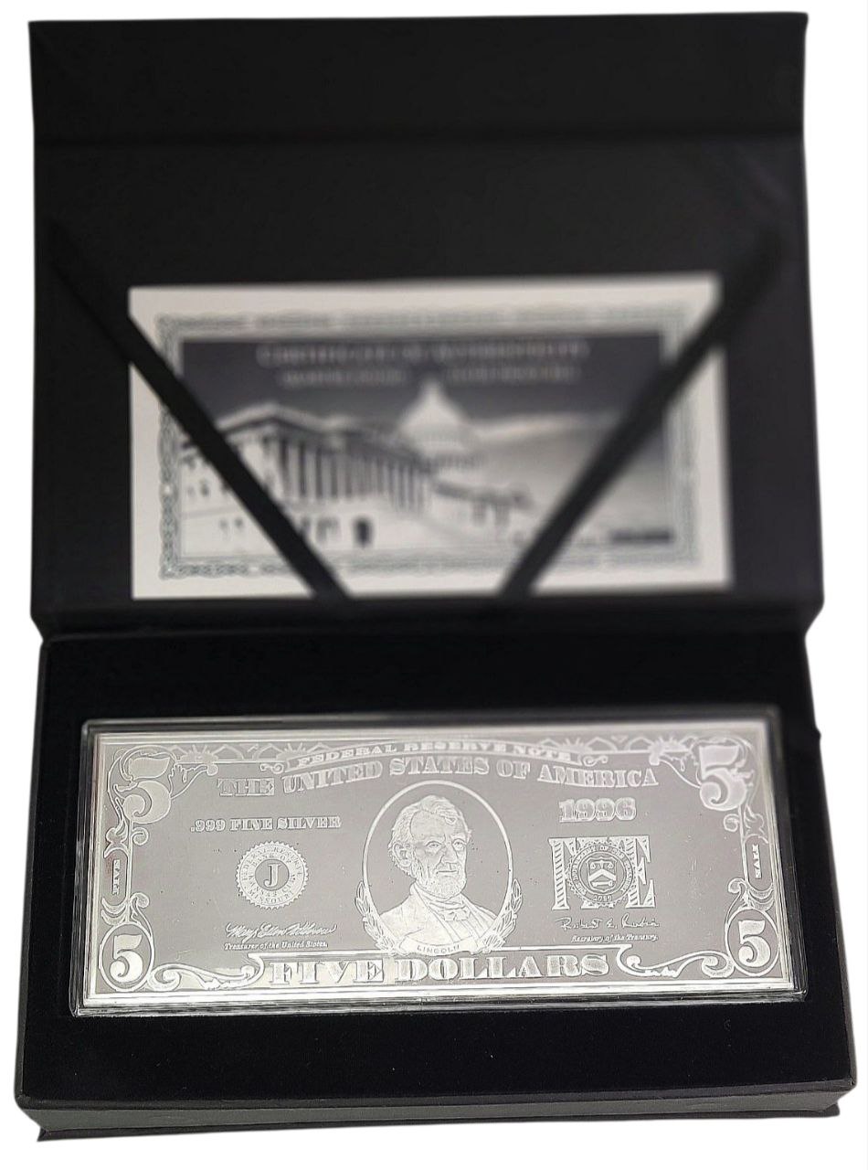 Коллекционная серебряная банкнота «5 долларов США» 124,4 г