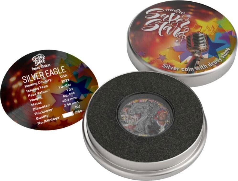 Коллекционная серебряная монета «Американский Орел Liberty – Тупак Шакур» 31,1 г 2022 год