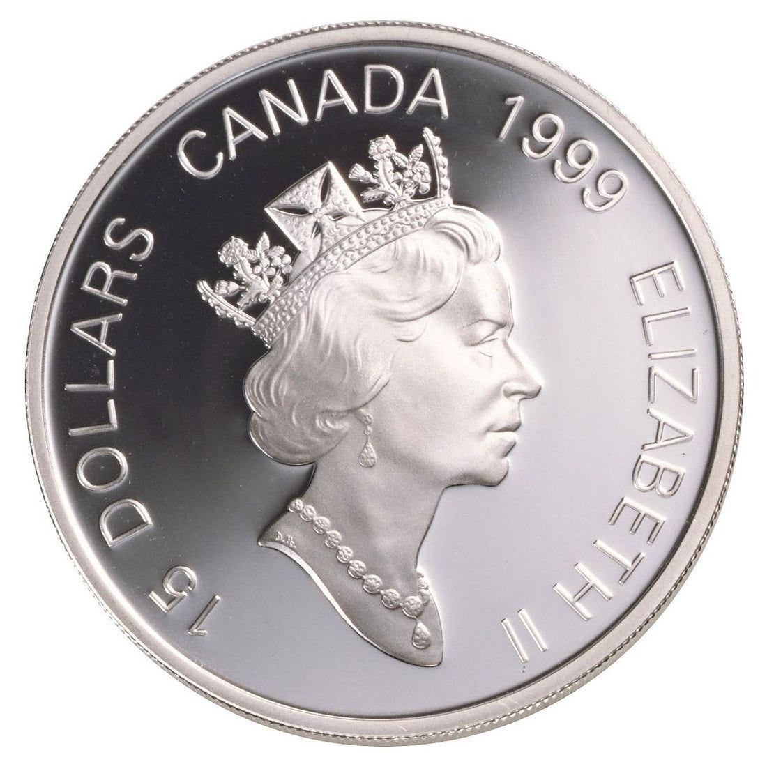 На аверсе монеты изображён портрет Её Величества королевы Елизаветы II в профиль. Вокруг портрета расположены надписи «ELIZABETH II», «CANADA», «1999» и номинал «15 DOLLARS». Зеркальная поверхность аверса контрастирует с матовым рельефом, создавая эффект глубины и чёткости.