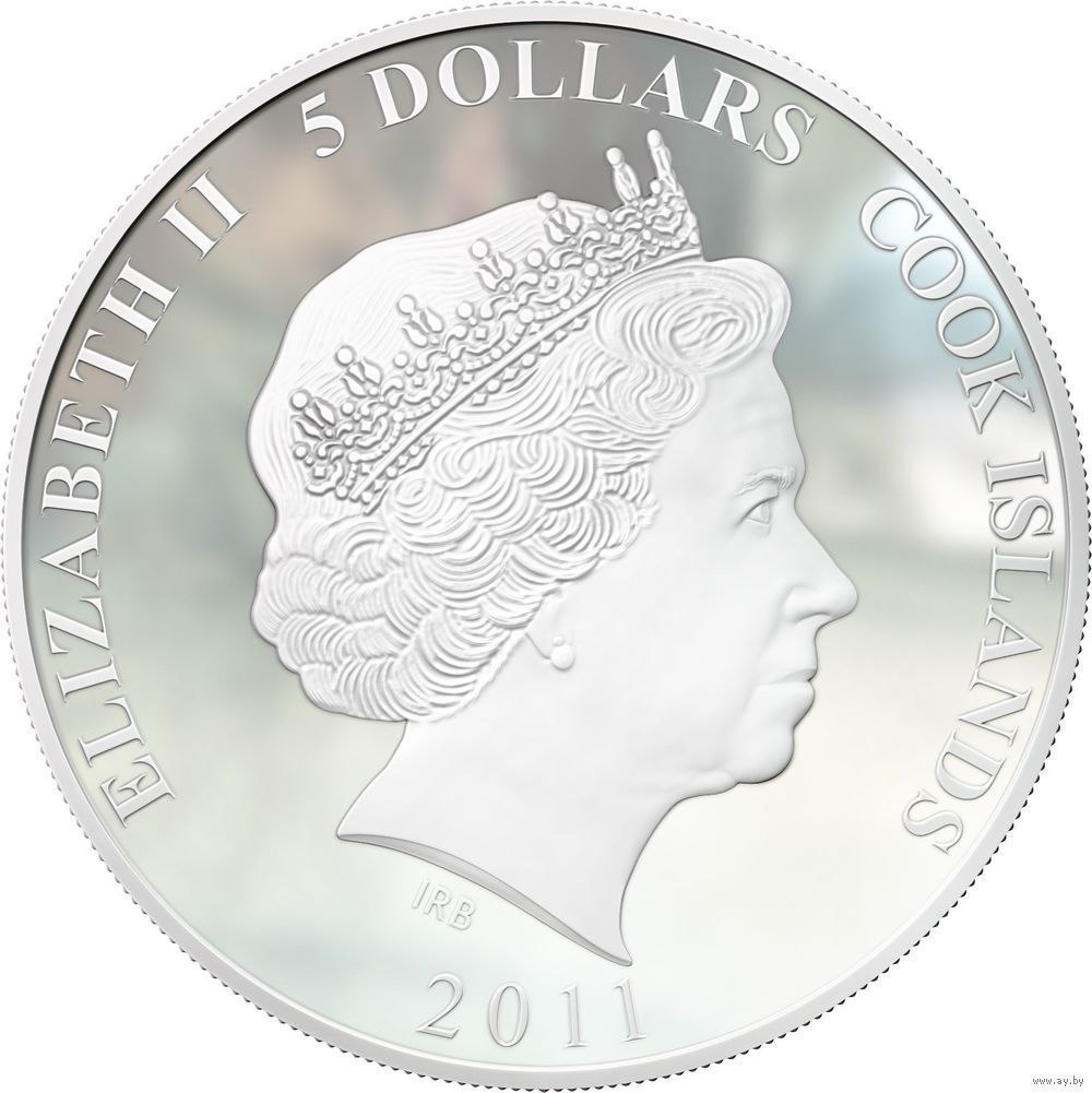 На аверсе представлен традиционный портрет Её Величества королевы Елизаветы II в профиль. Вокруг него расположены надписи «ELIZABETH II», «COOK ISLANDS», «5 DOLLARS» и год выпуска «2011». Зеркальный фон идеально контрастирует с рельефом, придавая монете классический и утончённый вид.