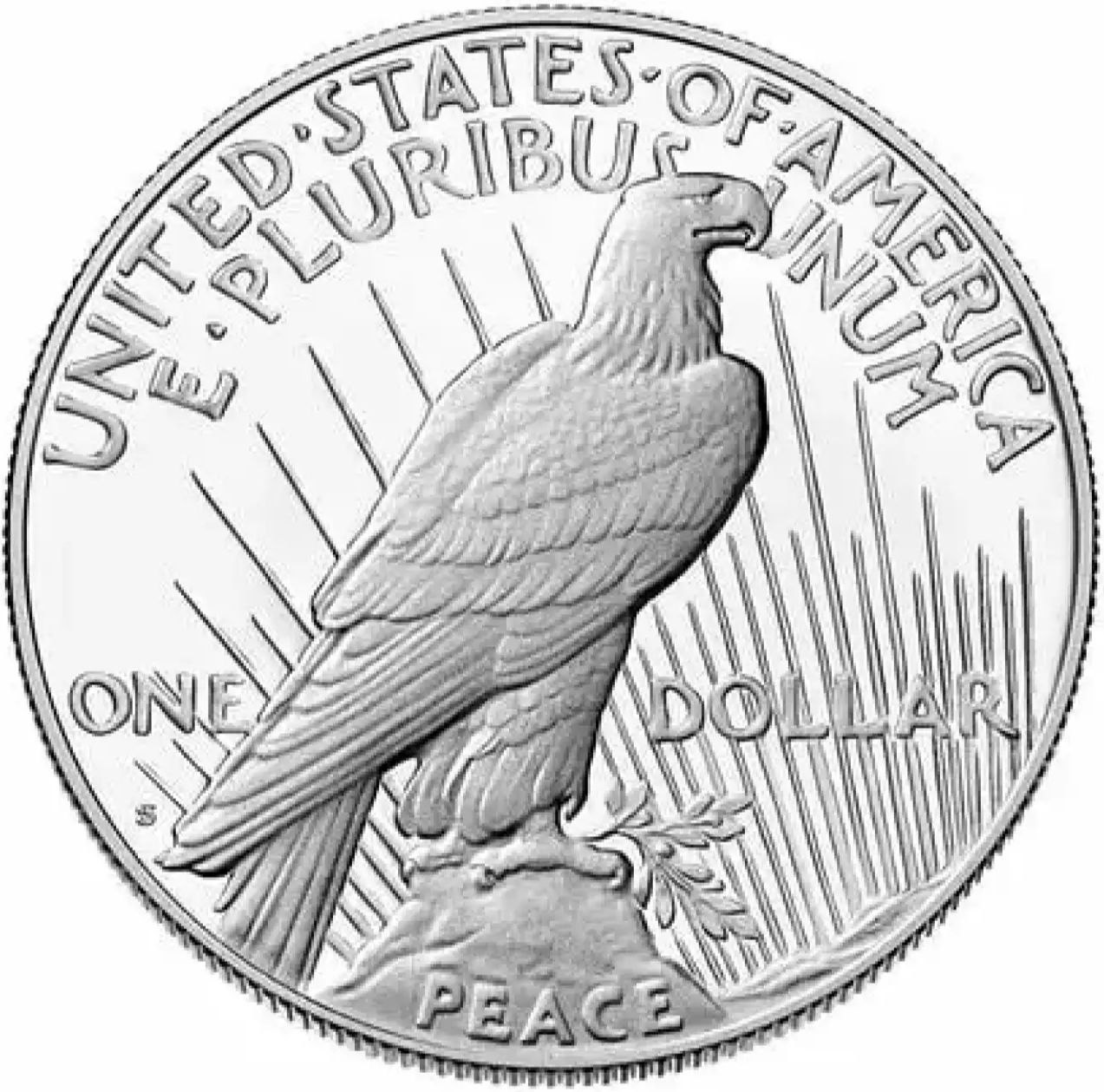 На реверсе изображён могучий орёл, стоящий на скале и держащий в когтях оливковую ветвь — символ мира. За орлом расходятся солнечные лучи, подчёркивающие идею нового рассвета для человечества. В верхней части реверса размещена надпись «UNITED STATES OF AMERICA» и девиз «E PLURIBUS UNUM» («Из многих — единое»), а внизу — «ONE DOLLAR» и слово «PEACE».
