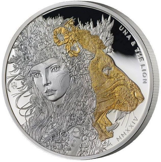 Коллекционная серебряная монета «Уна и Лев» 31,1 г 2024 год