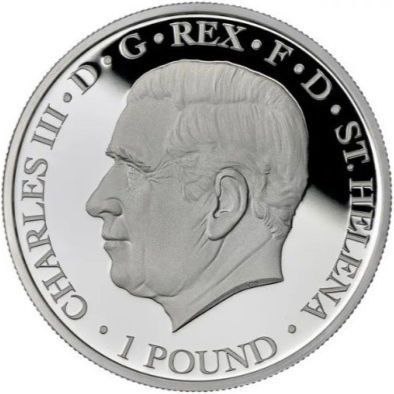 На аверсе монеты изображён портрет короля Чарльза III в профиль, выполненный с высоким уровнем детализации. Вокруг портрета размещены надписи «CHARLES III, D·G·REX, F·D» и «ST. HELENA», которые обозначают титулы монарха и страну-эмитента. В нижней части аверса указан номинал монеты — «1 POUND». Дизайн аверса строгий и официальный, соответствующий стандартам британских территорий.