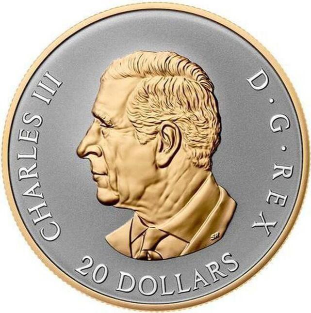 На аверсе изображён портрет Его Величества короля Чарльза III, созданный художницей Сьюзен Тейлор. Вдоль края расположена надпись «CHARLES III • D • G • REX» — «Карл III, милостью Божьей, король». Внизу указан номинал «20 DOLLARS». Портрет выполнен с золотистым оттенком, что придаёт монете торжественность и изысканный вид.