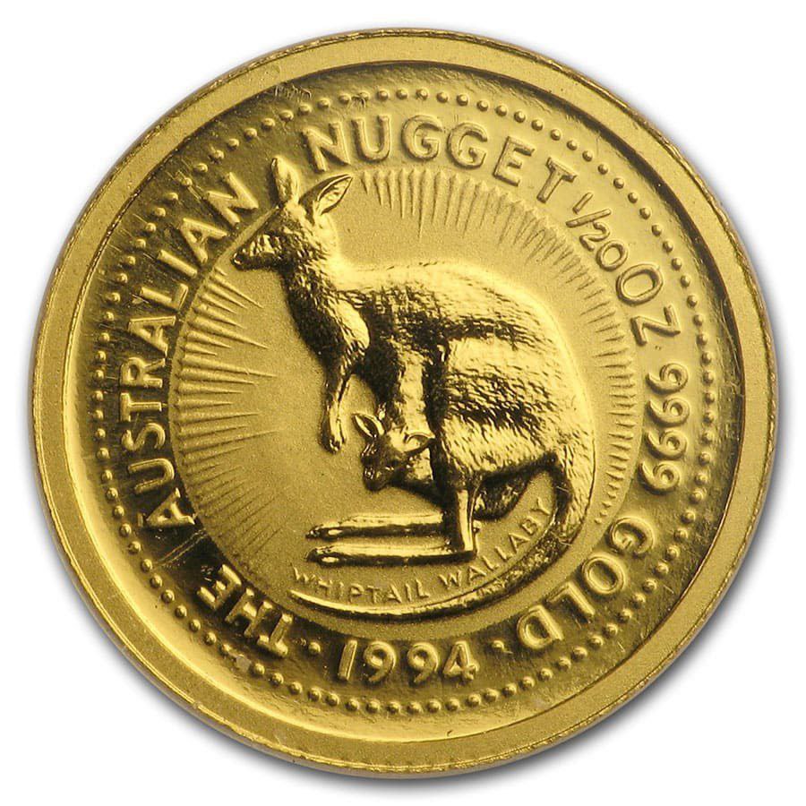 Реверс монеты украшен изображением валлаби — небольшого кенгуру, известного как Whiptail Wallaby, стоящего рядом со своим детёнышем. На фоне видны солнечные лучи, символизирующие тепло австралийских просторов. Вдоль края идут надписи: «THE AUSTRALIAN NUGGET», «1/20 OZ. 9999 GOLD» и год выпуска «1994». Художественное исполнение передаёт нежность и природную гармонию этой сцены.