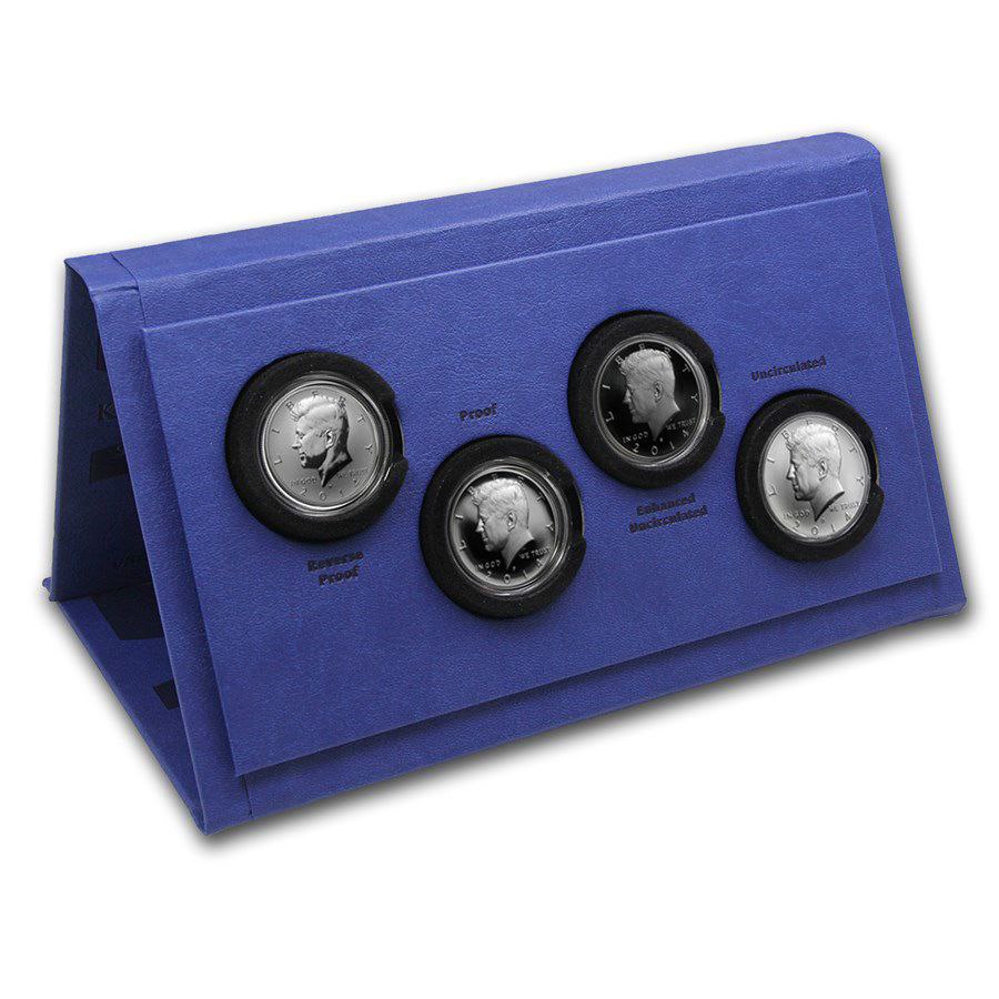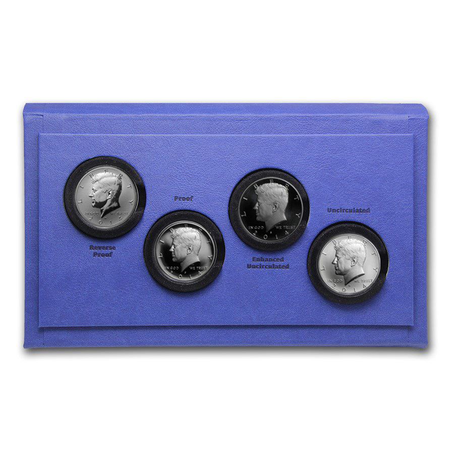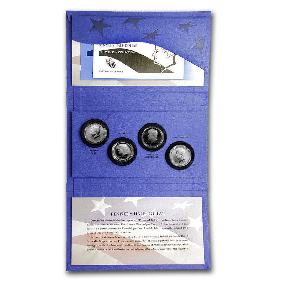 Этот коллекционный набор посвящён 50-летию пол доллара Кеннеди и включает четыре серебряные монеты, выполненные в разных вариантах отделки. Набор создан Монетным двором США и представлен в стильном синем буклете, который одновременно служит футляром и презентационной подставкой. Благодаря сочетанию инвестиционной ценности серебра и различных технологий чеканки коллекция является ценной для нумизматов и ценителей американской монетной истории.