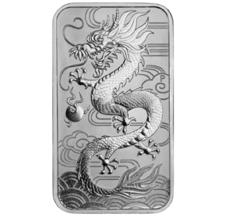 Коллекционный серебряный слиток-монета «Дракон» 31,1 г 2018 год